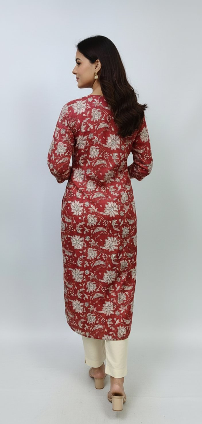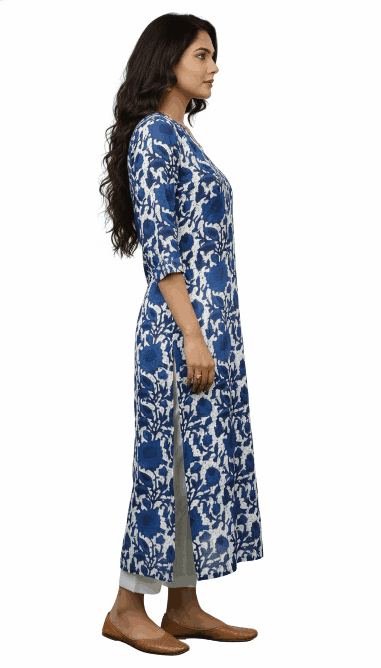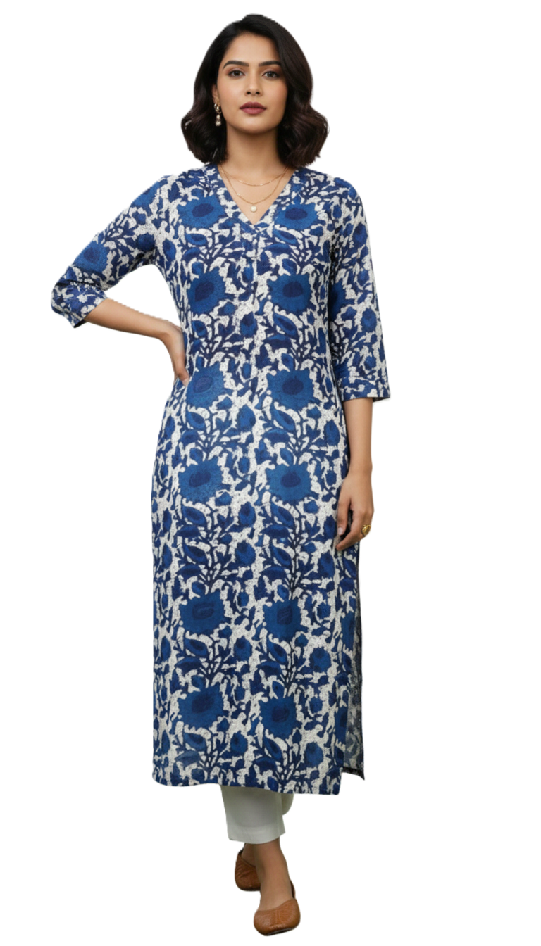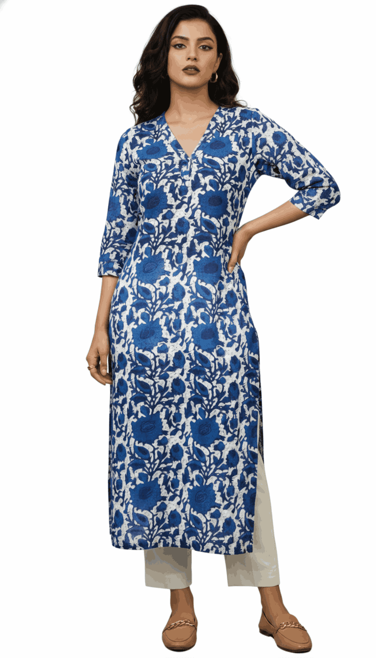 Flowy Rayon/Cotton Floral Kurta with Signature Neck Pleat