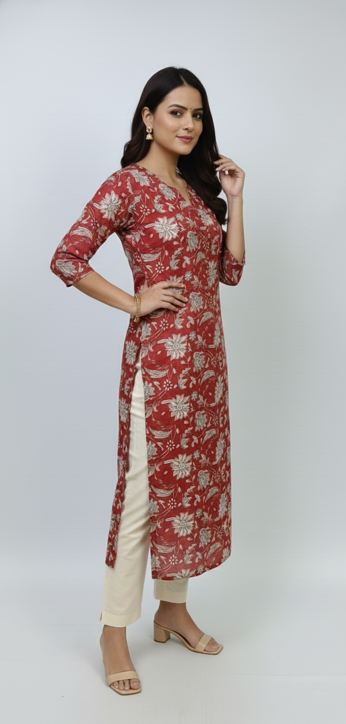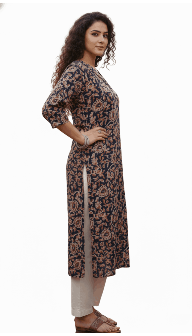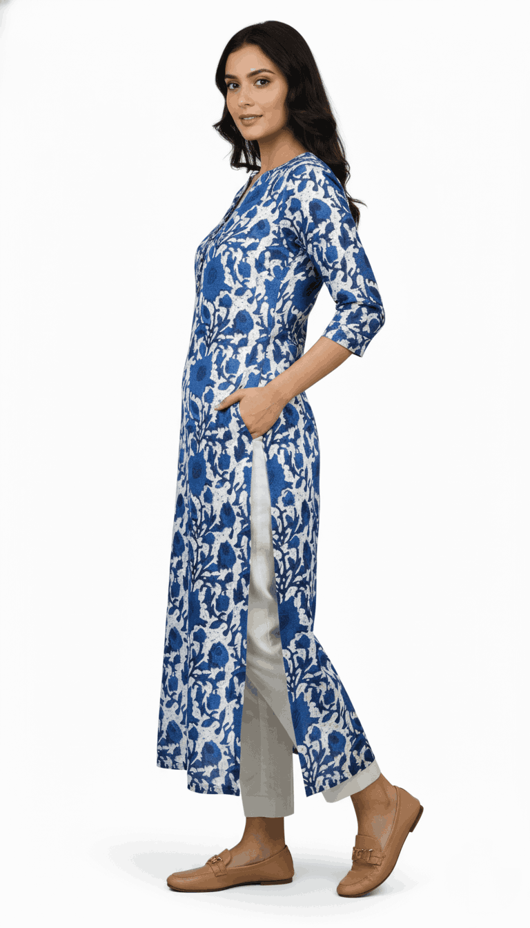 Flowy Rayon/Cotton Floral Kurta with Signature Neck Pleat